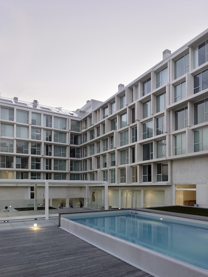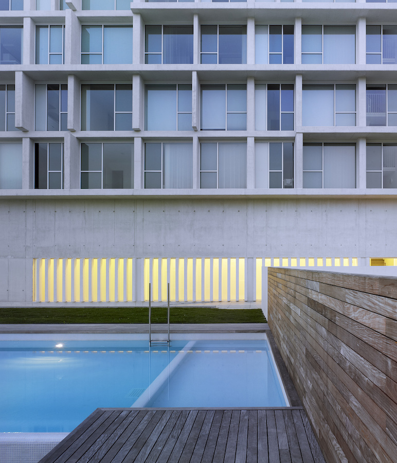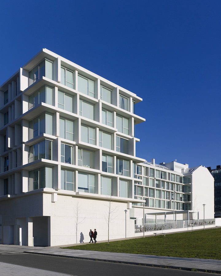 Conxunto residencial de 78 vivendas e unha singular zona de lecer privada. Caracterízase por unha fachada fragmentada, compoñendo un crisol de macizos e transparentes, claros e escuros, utilizando o vidro e o formigón branco como materiais destacados.